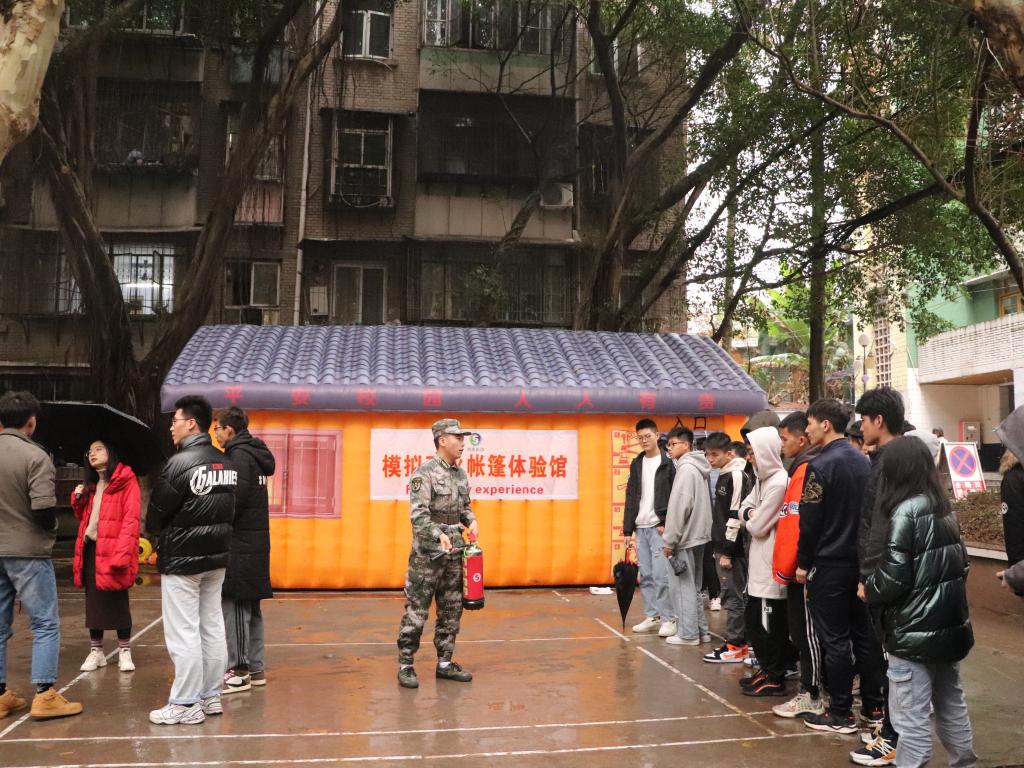 在活动中,首先消防警官向同学们介绍了灭火器的正确使用方法,在使用灭火器时应该左手四指提灭火器下柄,右手拔出消火栓,然后握住灭火喷头,左手大拇指向下按住灭火器上柄,在保证自己安全的情况下,站在远离火源三米处,喷头对准火源根部来回喷洒,直至大火熄灭即灭火成功。随后,消防警官向同学们教授了在遭遇火灾时的逃生方法,在面临火灾时,同学们应该用湿毛巾捂住口鼻,顺着绿色通道指引牌屈伸弯腰前行。在消防警官的指导下,每一位同学都使用了专门的模拟灭火器对模拟大火进行了扑灭,并且在模拟火灾帐篷中进行了火灾逃生演练。学院领导和老师们也参与其中,提高了同学们学习消防安全知识的积极性。