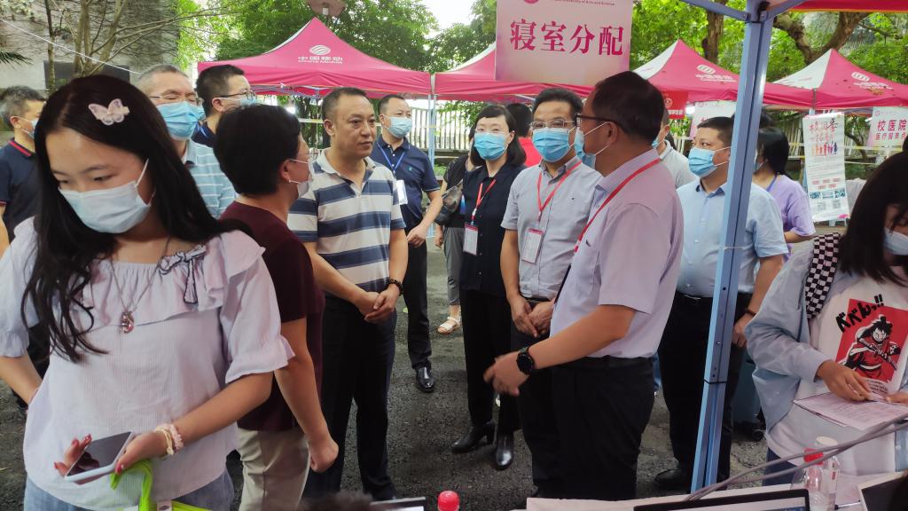 报道当天发放校园卡,新生手册,宿舍钥匙等物品及辅助新生完成个人信息核对等相关事宜。迎新工作进行得如火如荼,迎新现场也严格的按照流程进行。随着新同学陆续的到来。志愿者们首先帮助他们把行李寄存好,随后有条不紊的引领新生完成报到的所有程序,在志愿者的陪同下报道程序简单快速。院领导和老师对同学们关于政策、学习、生活等方面的疑问进行了详细解答,并予以鼓励,真正做到了:沟通零距离。对于省外报到新生,在进入校园第一时间就由志愿者带领前往校医院做二次核酸检测,坚决抓好防疫工作贯彻落实。当天下午刁永锋校长等校领导一行人莅临taptap点点官方网站视察指导迎新工作,并予以高度肯定。