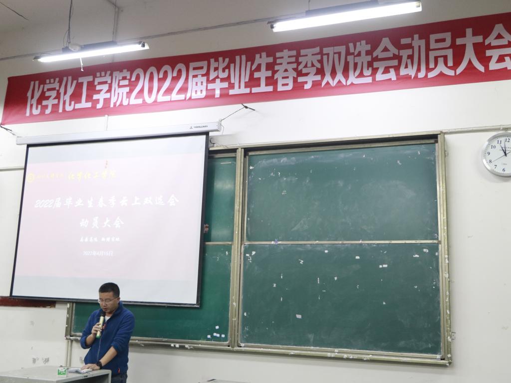 2022年4月15日上午11点,taptap点点官方网站于南坝校区一教楼111教室举办了2022届毕业生春季云上双选会动员大会,学院党总支书记朱朝菊、院长赖川、副院长向文军、各教研室主任、学工办全体老师和毕业班带班辅导员及2018级100余名毕业生出席会议,大会由学院党总支副书记潘维主持。