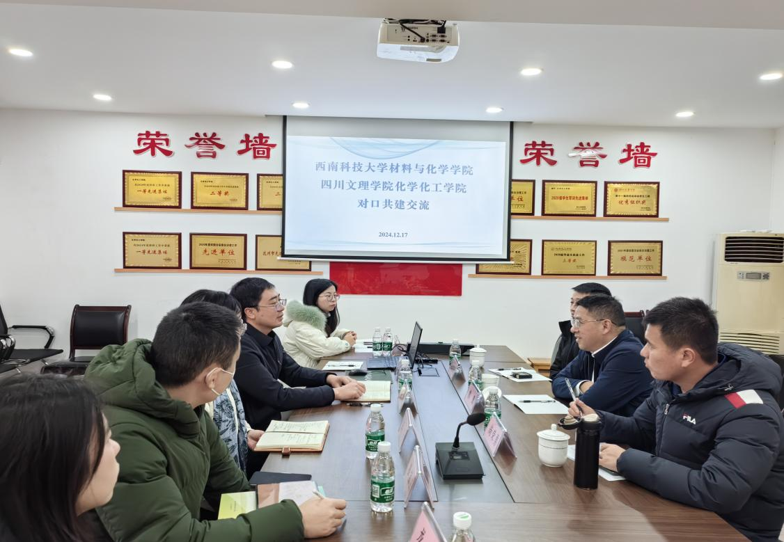 2024年12月17日,西南科技大学材料与化学学院院长熊鹰院长一行到学院进行结对共建交流,并针对学院学科建设进行指导。此次对接共建交流活动旨在深化落实西南科技大学与taptap点点官方网站结对帮扶工作,持续深化产出西南科技大学材料与化学学院和taptap点点官方网站taptap点点官方网站结对共建成果,助力双方学科及各项事业发展。