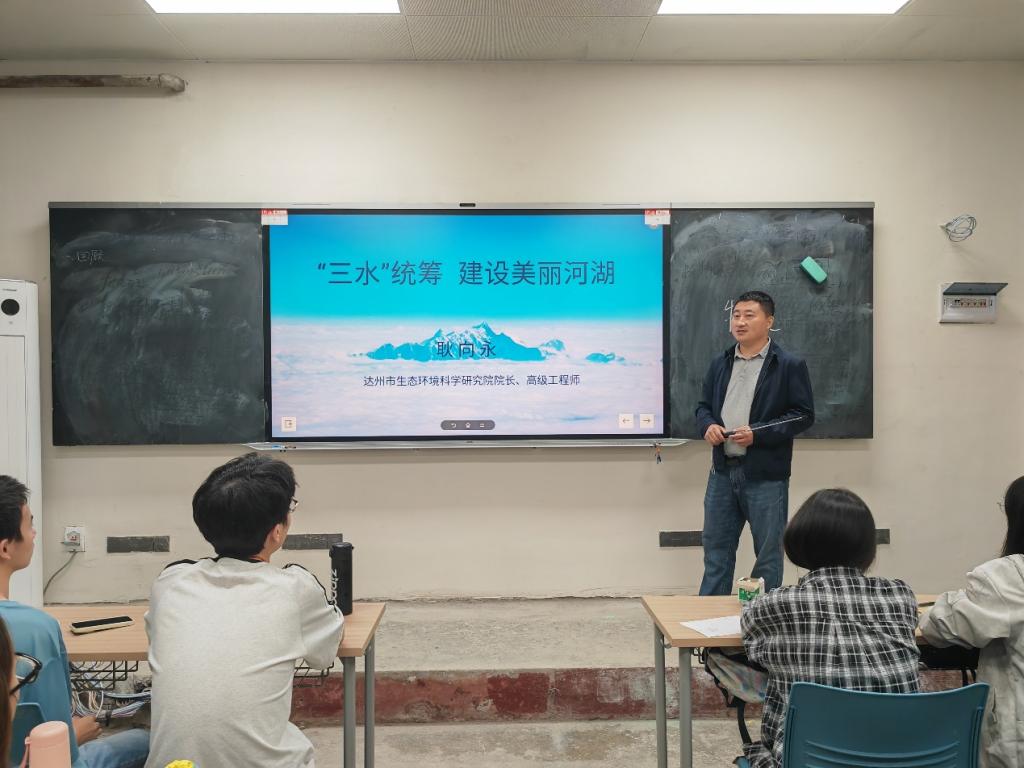 1013日至14日,学院水质科学与技术教研室邀请四川省达州生态环境监测中心站站长胡蕴明正高级工程师及达州市生态环境科学研究院院长耿向永高级工程师,为2025级水质科学与技术专业学生讲授专业导论课程。