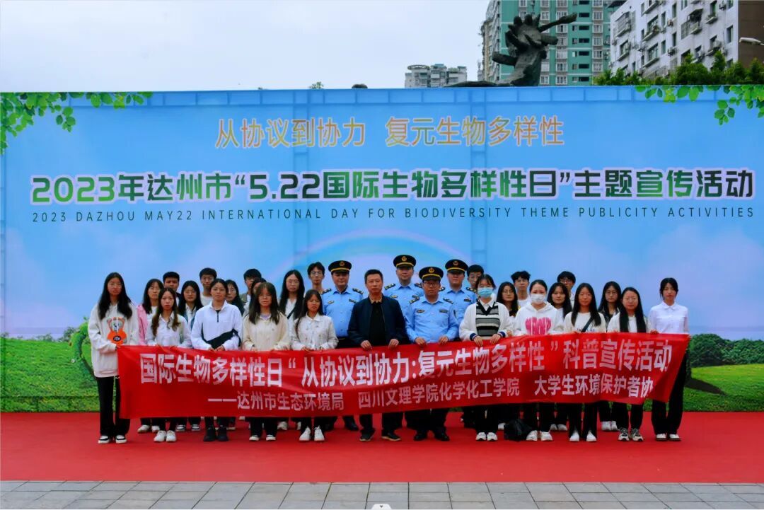 为宣传国际生物多样性日,让广大市民深入了解国际生物多样性日的相关知识,同时提高对保护生物多样性重要性的认识,2023年5月23日taptap点点官方网站选派32名学生前往达州市仙鹤广场参加由市生态环境局、市公安局、市自然资源局、市水务局、市农业农村局、市林业局、达川生态环境局、taptap点点官方网站联合举办的“5.22国际生物多样性日”主题宣传活动,旨在宣传环保意识、心系人类命运,共同保护生物多样性。活动由学院2021级周立阳同学主持。
