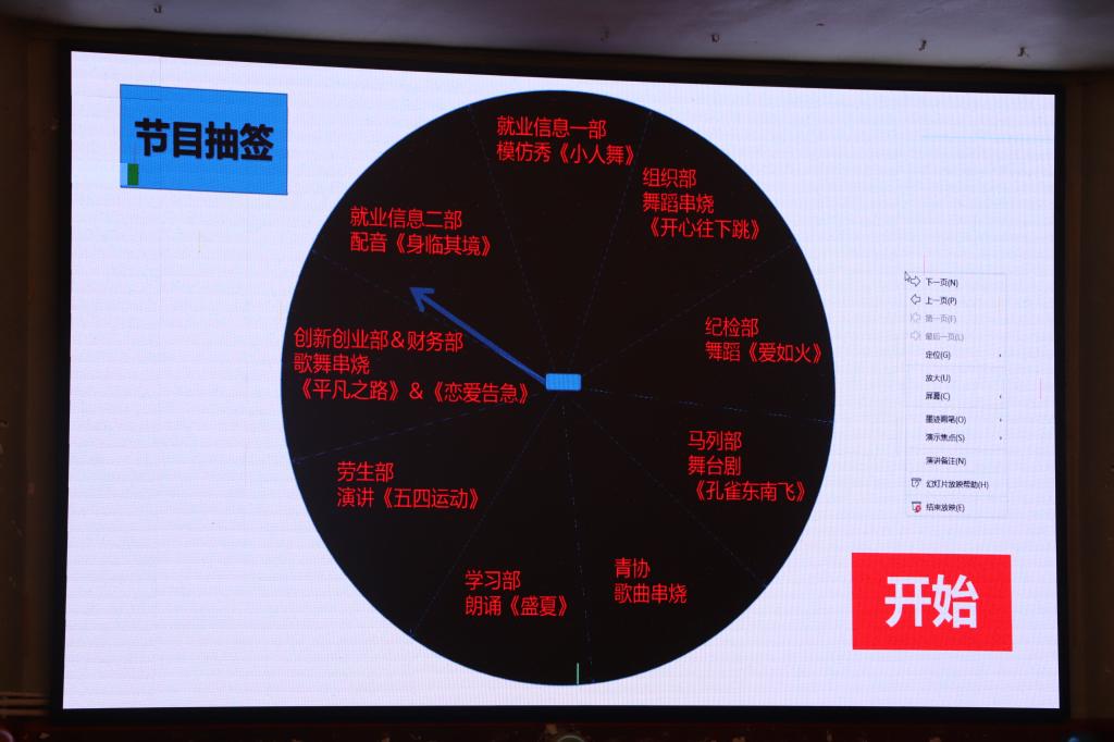 晚会伊始在主持人的主持下,成功调动起了大家的积极性,之后伴随热烈的掌声团学联谊活动正式开始,活动期间各部门都表演了独具特色的节目,每个节目都受到了大家的一致好评。期间穿插趣味小游戏,现场笑声不断。