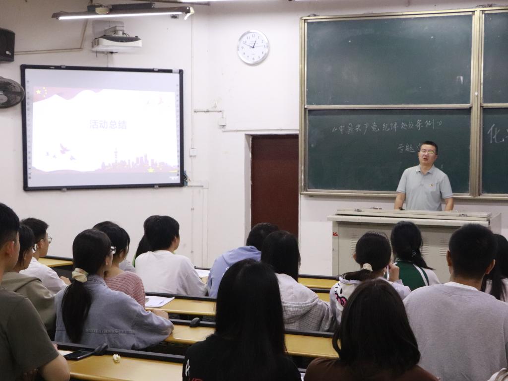 为了学习贯彻新修订的《中国共产党纪律处分条例》,并准确掌握其主旨要义和规定要求,加强党的纪律建设、推动全面从严治党向纵深发展,taptap点点官方网站学生第一、第二党支部于4月19日分别在一教楼100教室、109教室开展“党纪学习教育”主题党日活动。学院党委副书记潘维及两个支部全体成员参加此次活动。