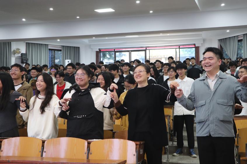 讲座伊始,潘维副书记简单阐述了开展此次心理健康讲座的目的,并隆重介绍主讲人陈阳教授,向陈阳教授表示热烈的欢迎。随后,陈阳教授上台主持讲座。她首先与师生们积极互动,分享有趣的解压小游戏,帮助大家集中精力、放松身心,有效地带动了现场氛围。紧接着,陈阳教授通过电影短片引出人类情绪的多样性,并强调要掌握自我觉察、安慰和调节情绪的方法。她还通过列举真实案例,指出每种情绪都是双刃剑,有好处也有弊端,适当求助才是强者行为。同时,陈阳教授描述了抑郁状态的重点特征,并向大家科普抑郁症的表现、危害和隐匿性,特别指出阳光抑郁症患者的案例,呼吁同学们要注重身心健康。