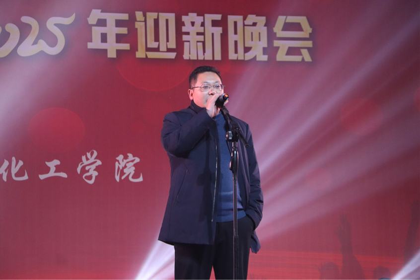 在这场化工人的年度盛会上,学院党委副书记向文军发表了致辞。他首先对2024级新生的到来表示热烈的欢迎。随后,他总结了学院一年来在学科建设、人才培养、科研竞赛等领域取得的显著成绩,肯定了学院青年学子在求学深造、学科竞赛、社会实践等方面的突出表现与喜人成绩,他寄语化工学子能在川文理这片沃土上书写人生的精彩篇章。最后,他预祝迎新晚会取得圆满成功,也祝同学们新年快乐,在新的一年里学业有成、收获满满,向着自己的梦想奋勇前行!