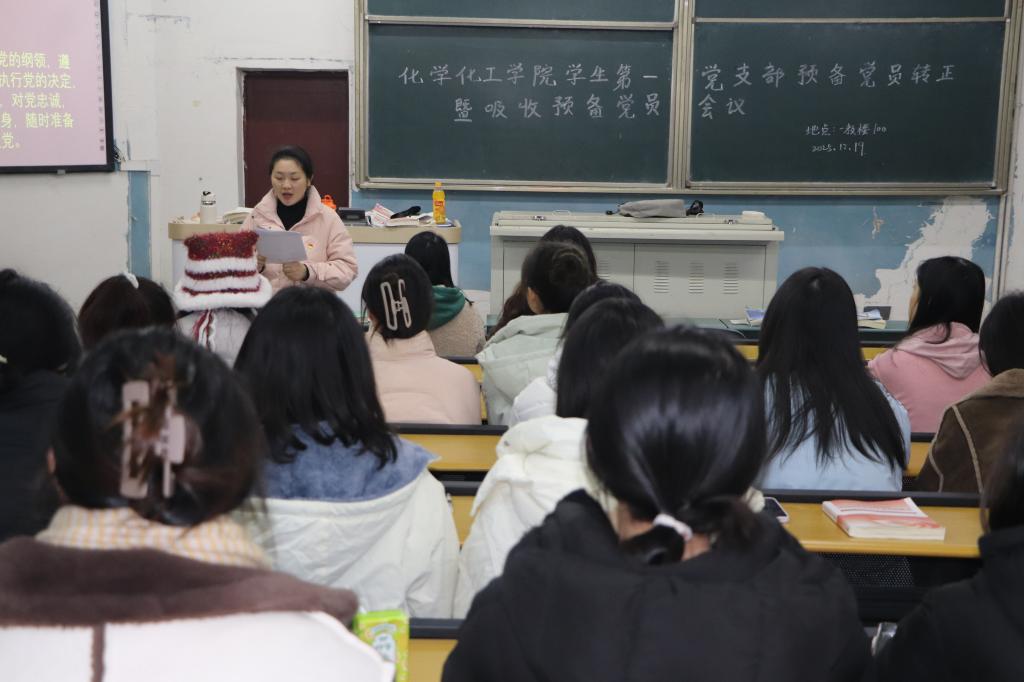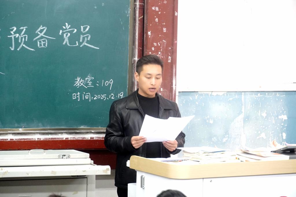 为加强基层党组织建设,壮大党员队伍,激发党员使命感与责任感,2025年12月19日下午13点,taptap点点官方网站学生第一、第二党支部分别在南坝校区一教楼100和109教室召开预备党员接收大会。大会由学生第一党支部书记李苹、第二党支部书记崔宝玉分别主持。