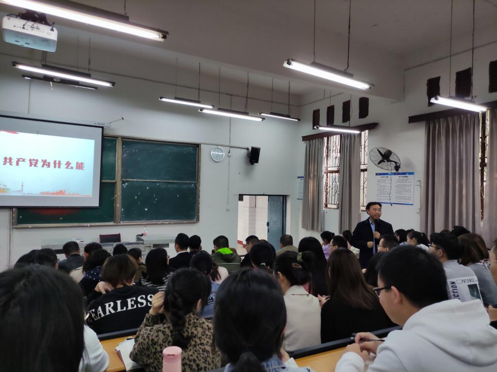 读史可以明智,知古方能鉴今。从百年党史中汲取奋斗力量,扎实推进党史学习教育走深走实。4月26日下午4点30分,学校组织部部长涂德祥教授在弘致楼111教室作题为“中国共产党为什么能”的党史宣讲。宣讲会由taptap点点官方网站党总支书记朱朝菊同志主持,taptap点点官方网站全体师生党员和入党积极分子参加。