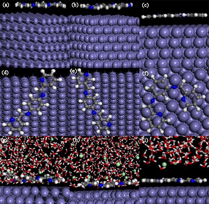 缓蚀剂分别在真空条件和1.0 M HCl中在低碳钢表面吸附的分子动力仿真模拟(图片来源:Journal of Molecular Liquids)