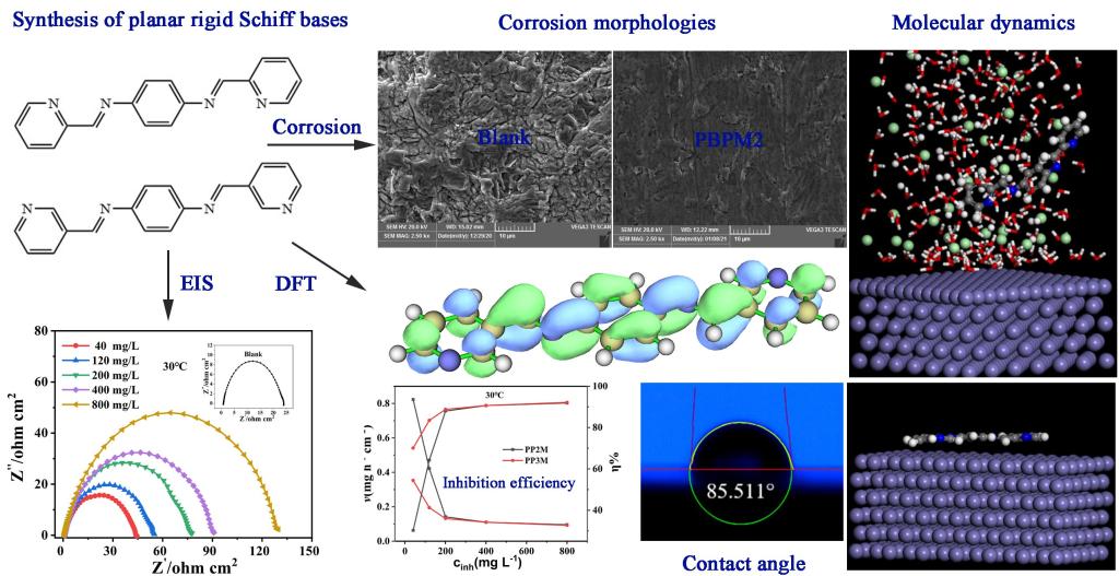 据悉,有机缓蚀剂因其效果好、成本低而被广泛应用在船舶、石油开采、化工设备酸洗等领域的防腐蚀。席夫碱(Schiff base)是一类含C=N双键的低毒性、易合成、结构可修饰的有机物,是金属酸洗的理想缓蚀剂之一,其产品研发与缓蚀机理研究倍受科研工作者的关注。