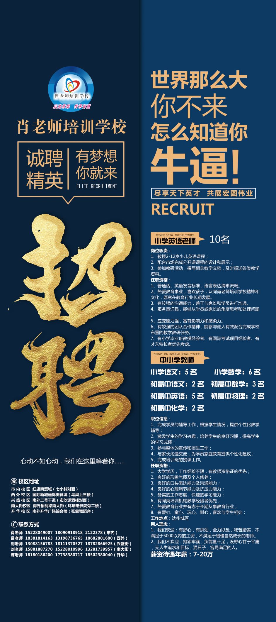 达州市肖老师培训学校招聘公告